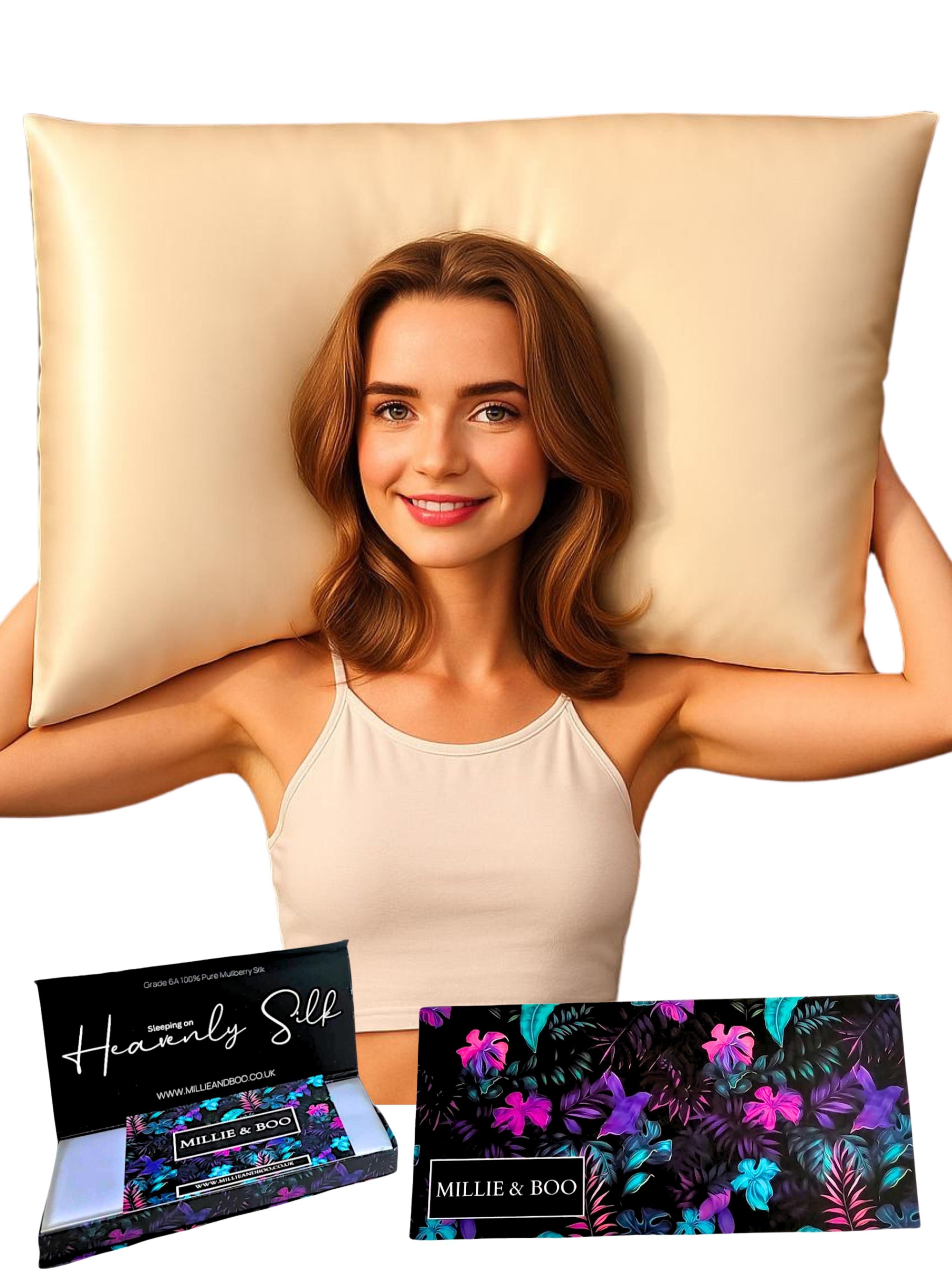 Available in a soothing pink shade, the Millie & Boo pillowcase comes in a convenient queen size of 50x75cm, with a secure zipper to keep your pillow in place. Whether you're looking for a pillow gift for a loved one or a silky like  gift for yourself, our satin pillowcase comes beautifully packaged in a gift box, making it an ideal choice for special occasions.